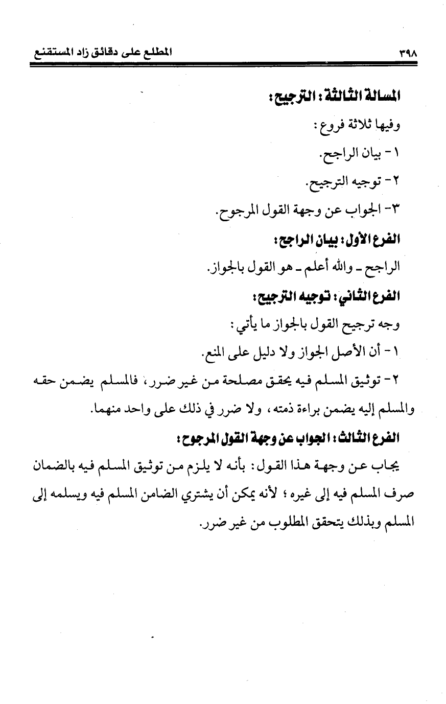 المسألة الثالثة: الترجيح: