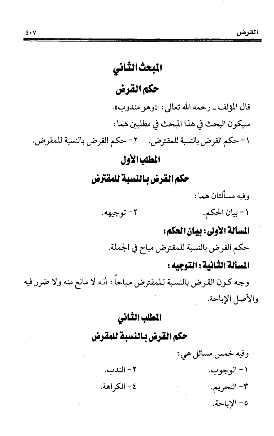 المطلب الأول حكم القرض بالنسبة للمقترض