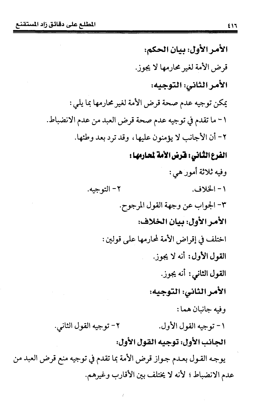 1 - ما تقدم في توجيه عدم صحة قرض العبد من عدم الانضباط.