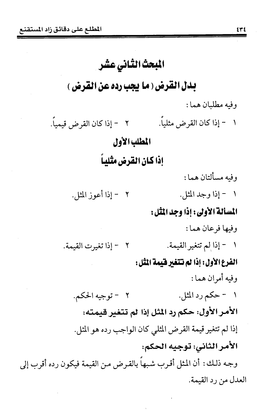 المبحث الثانى عشر بدل القرض (ما يجب رده عن القرض)