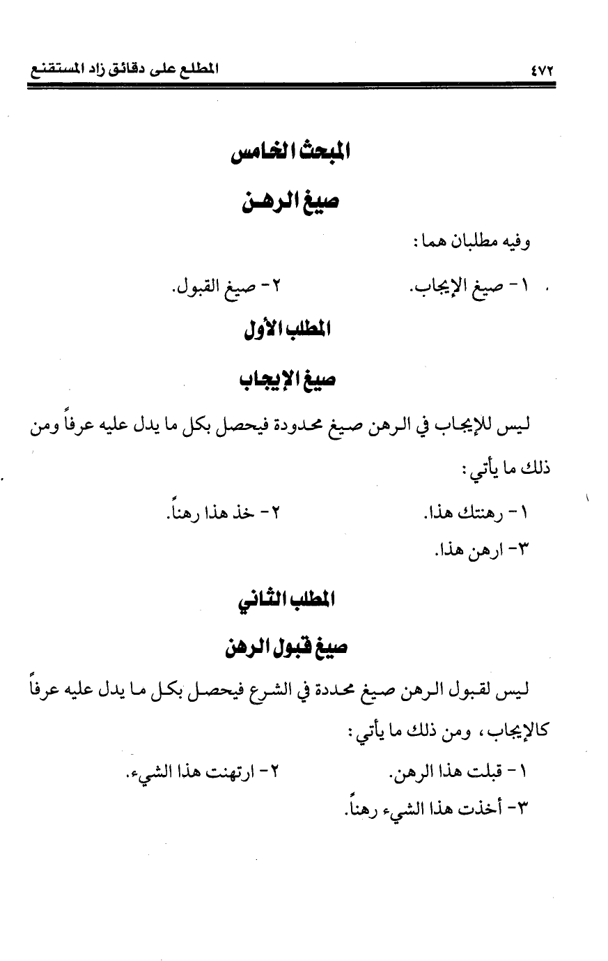 المطلب الثاني صيغ قبول الرهن
