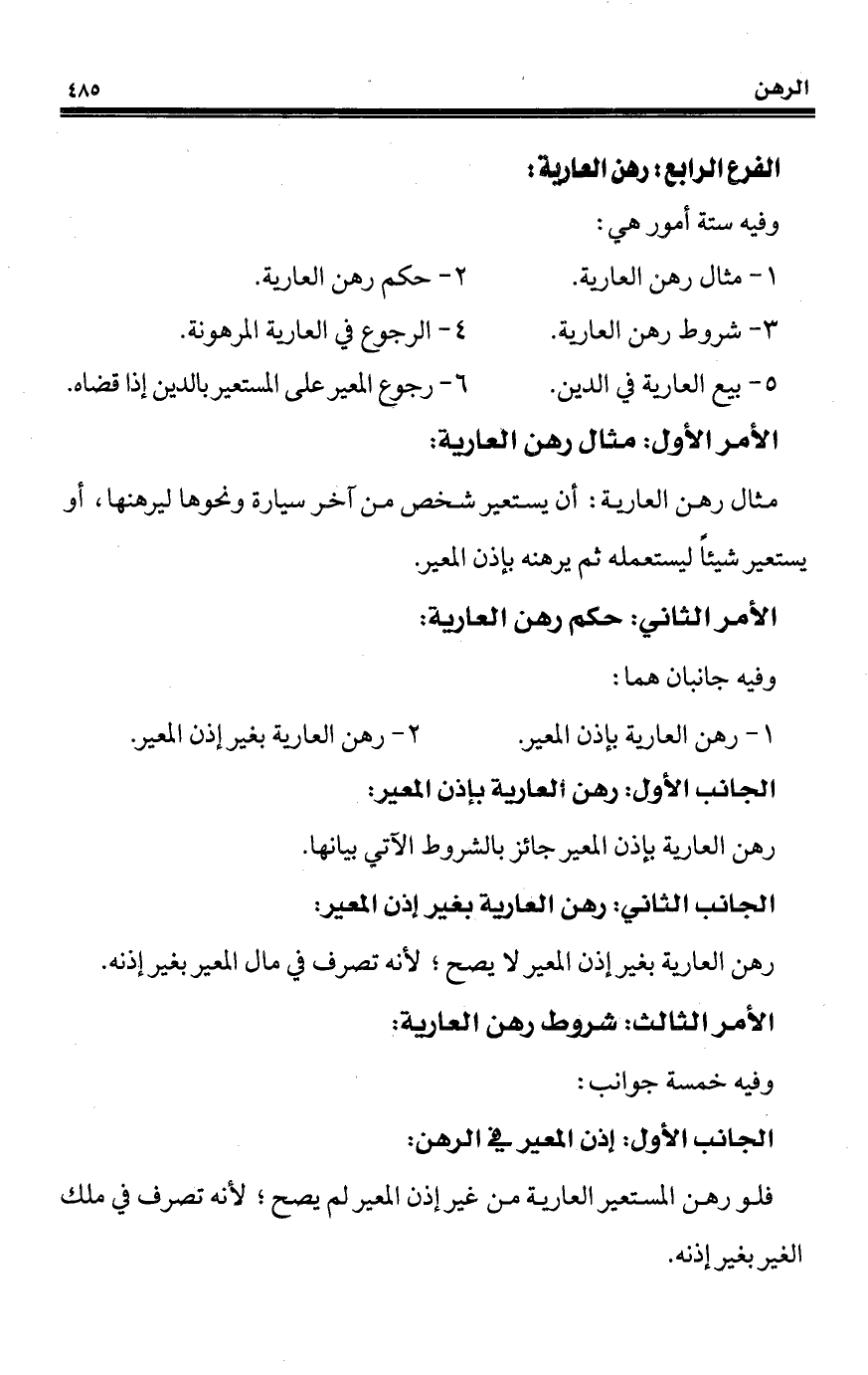 2 - حكم رهن العارية.