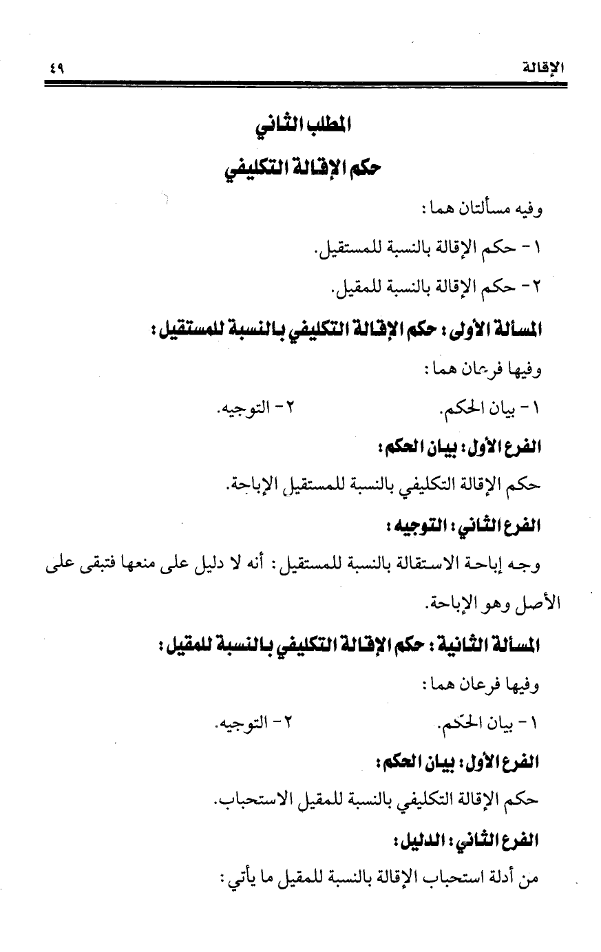 المطلب الثاني حكم الإقالة التكليفي