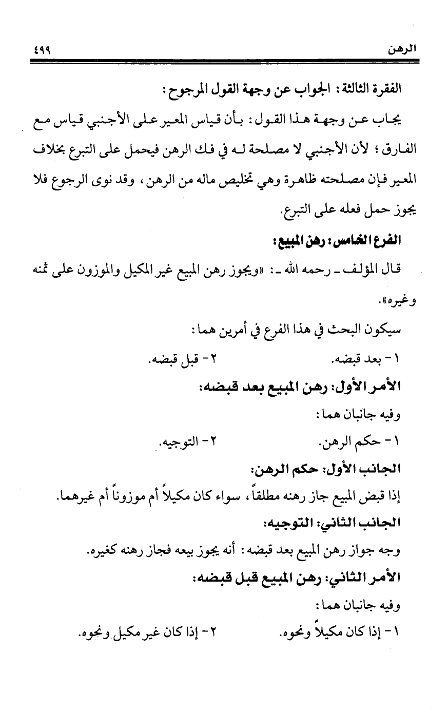 الفرع الخامس: رهن المبيع: