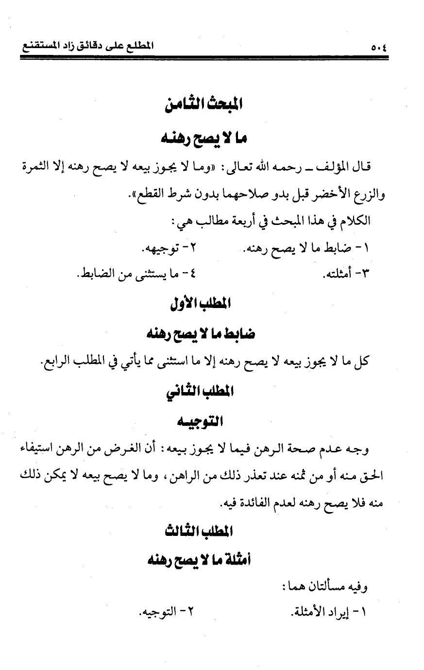 كتاب المطلع على دقائق زاد المستقنع «المعاملات المالية» (اسم الجزء: 2)