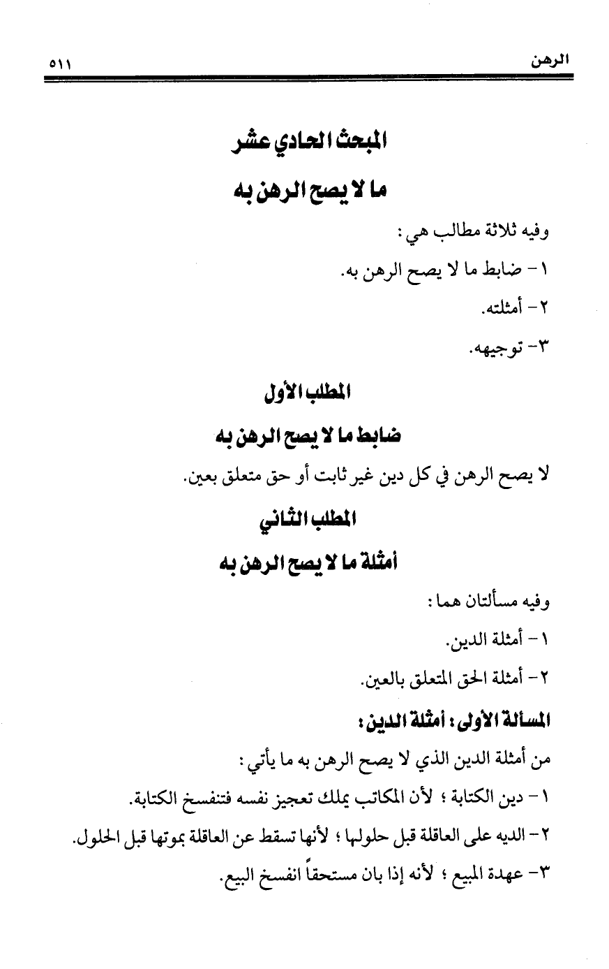 المطلب الثاني أمثلة ما لا يصح الرهن به
