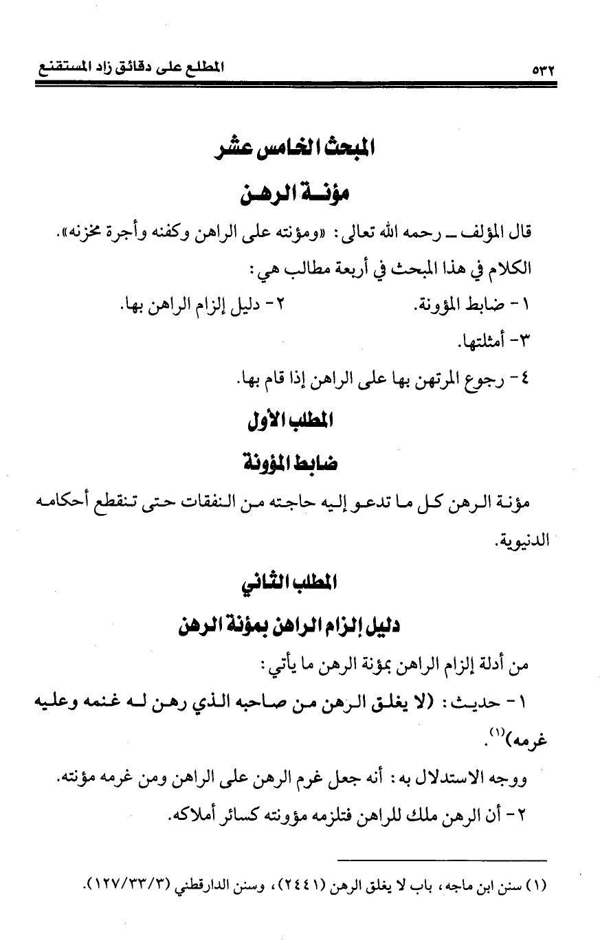 كتاب المطلع على دقائق زاد المستقنع «المعاملات المالية» (اسم الجزء: 2)