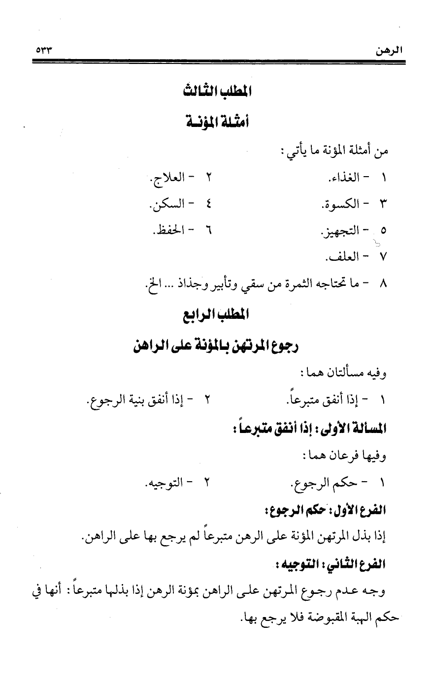 المطلب الرابع رجوع المرتهن بالمؤنة على الراهن