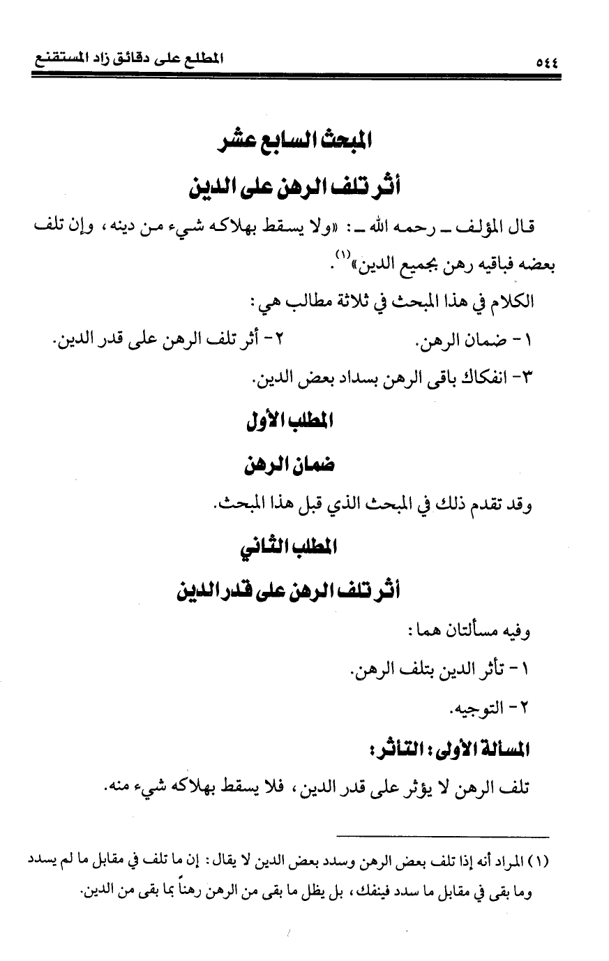 المبحث السابع عشر أثر تلف الرهن علي الدين