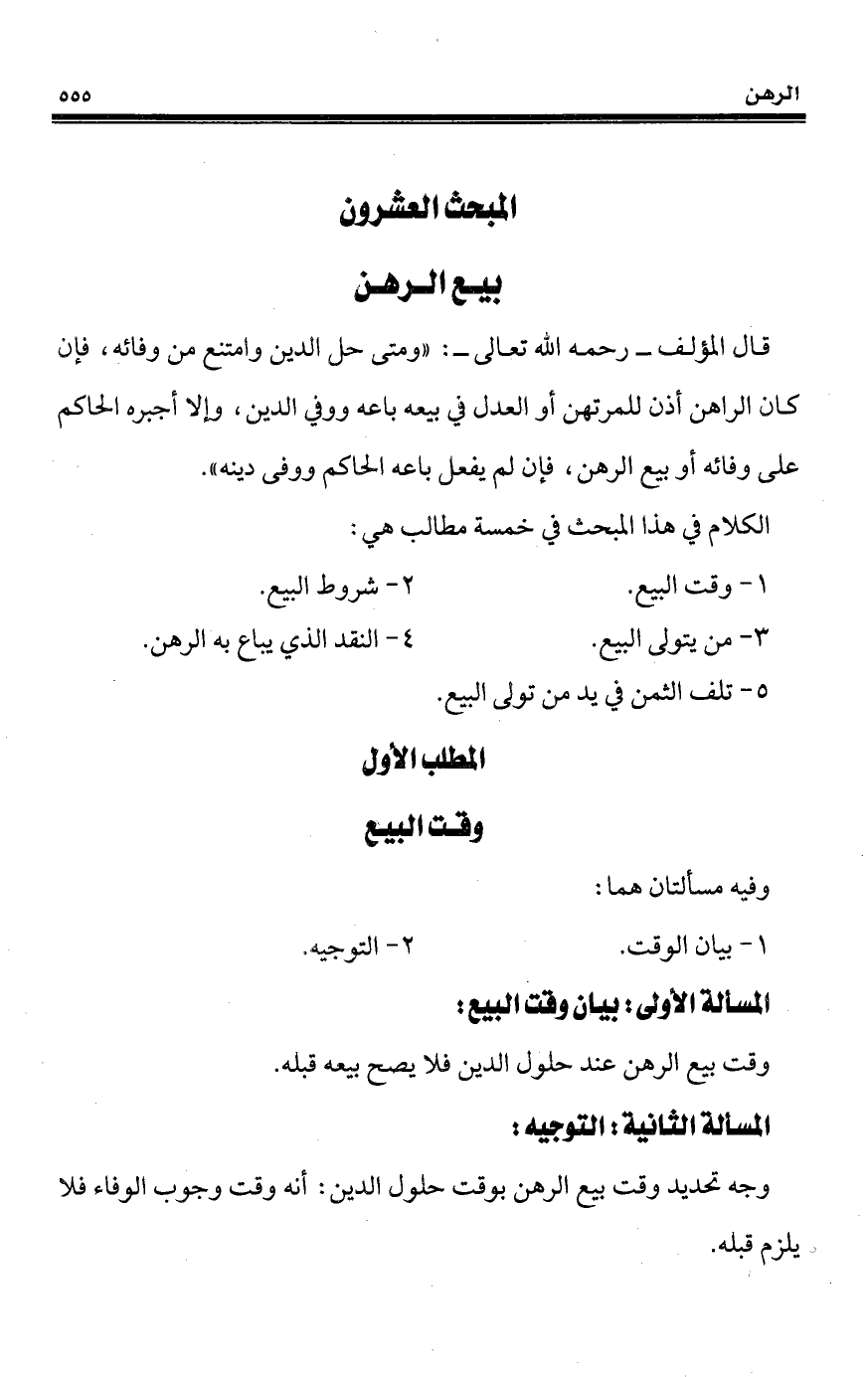 المبحث العشرون بيع الرهن