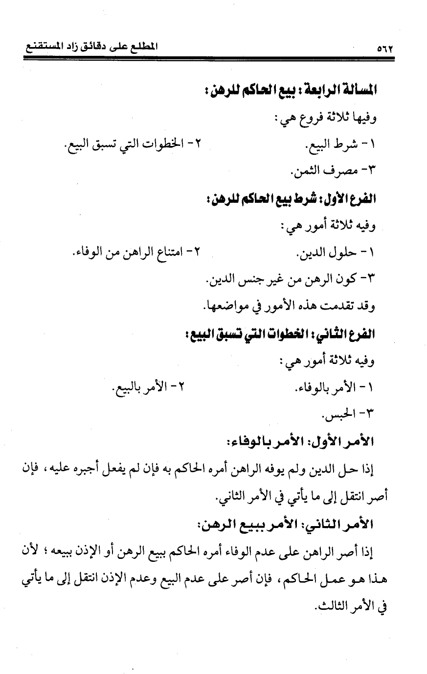 كتاب المطلع على دقائق زاد المستقنع «المعاملات المالية» (اسم الجزء: 2)