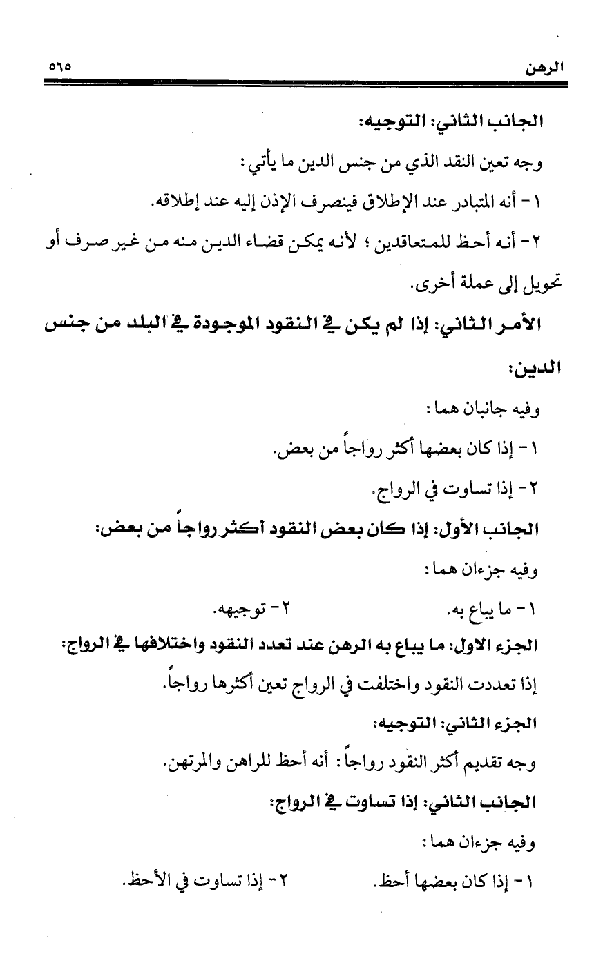 الجزء الأول: ما يباع به الرهن عند تعدد النقود واختلافها في الرواج: