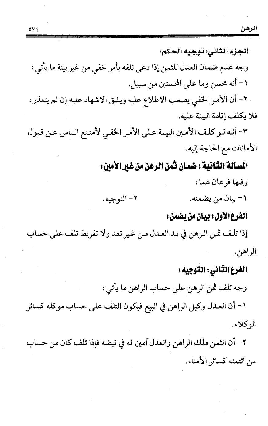 2 - أن الثمن ملك الراهن والعدل آمين له في قيضه فإذا تلف كان من حساب من ائتمنه كسائر الأمناء.