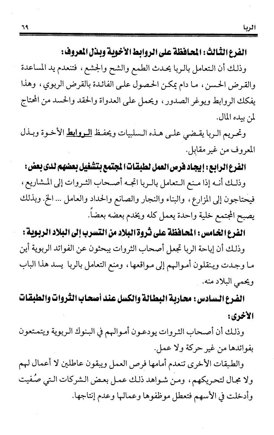 الفرع الخامس: المحافظة على ثروة البلاد من التسرب إلى البلاد الربوية:
