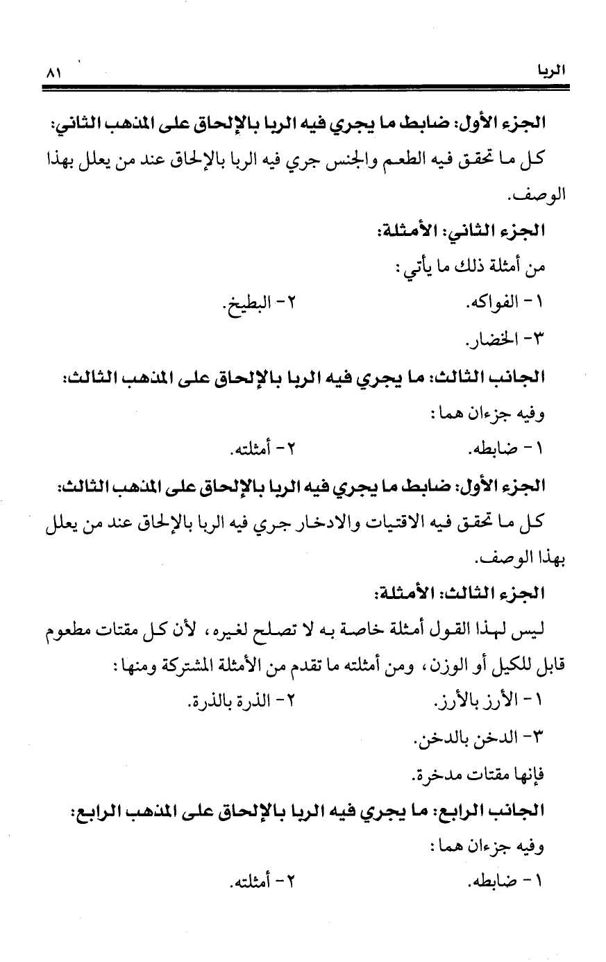الجزء الأول: ضابط ما يجري فيه الربا بالإلحاق على المذهب الثاني: