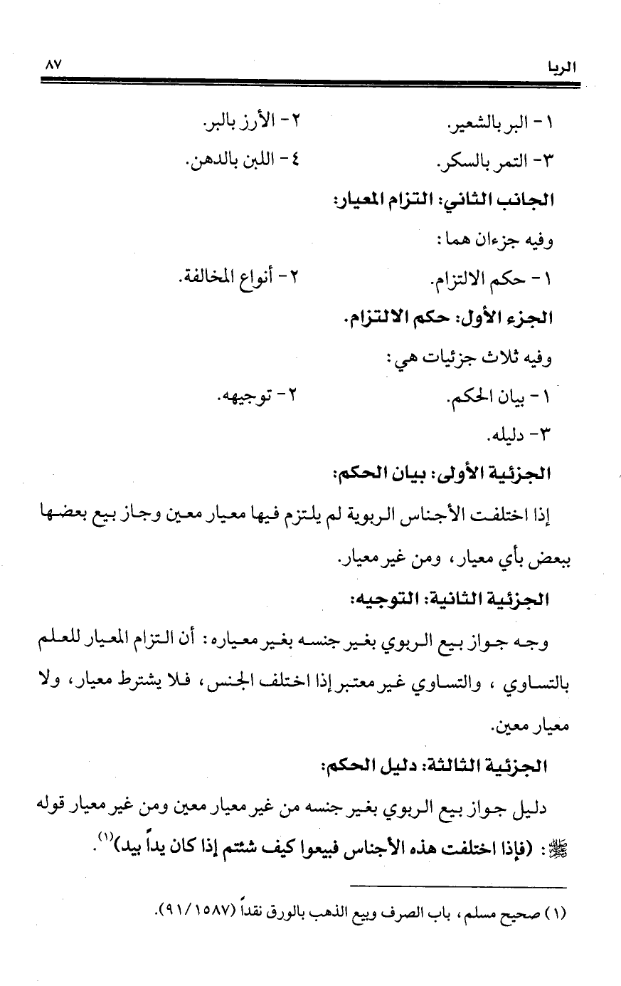 (¬1) صحيح مسلم، باب الصرف وبيع الذهب بالورق نقدًا (1587/ 91).