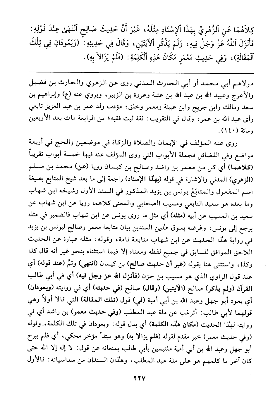 كِلاهُمَا عَنِ الزُّهْرِيِّ بِهَذَا الإِسْنَادِ مِثْلَهُ، غَيرَ أَن حَدِيثَ صَالِحٍ انتَهَى عِنْدَ قَوْلِهِ: فَأنْزَلَ اللهُ عَزَّ وَجَلَّ فِيهِ، وَلَمْ يَذْكُرِ الآيَتَينِ، وَقَال فِي حَدِيثِهِ: (وَيَعُودَانِ فِي تِلْكَ الْمَقَالةِ)، وَفِي حَدِيثِ مَعْمَرٍ مَكَانَ هَذِهِ الْكَلِمَةِ: (فَلَمْ يَزَالا بِهِ)
