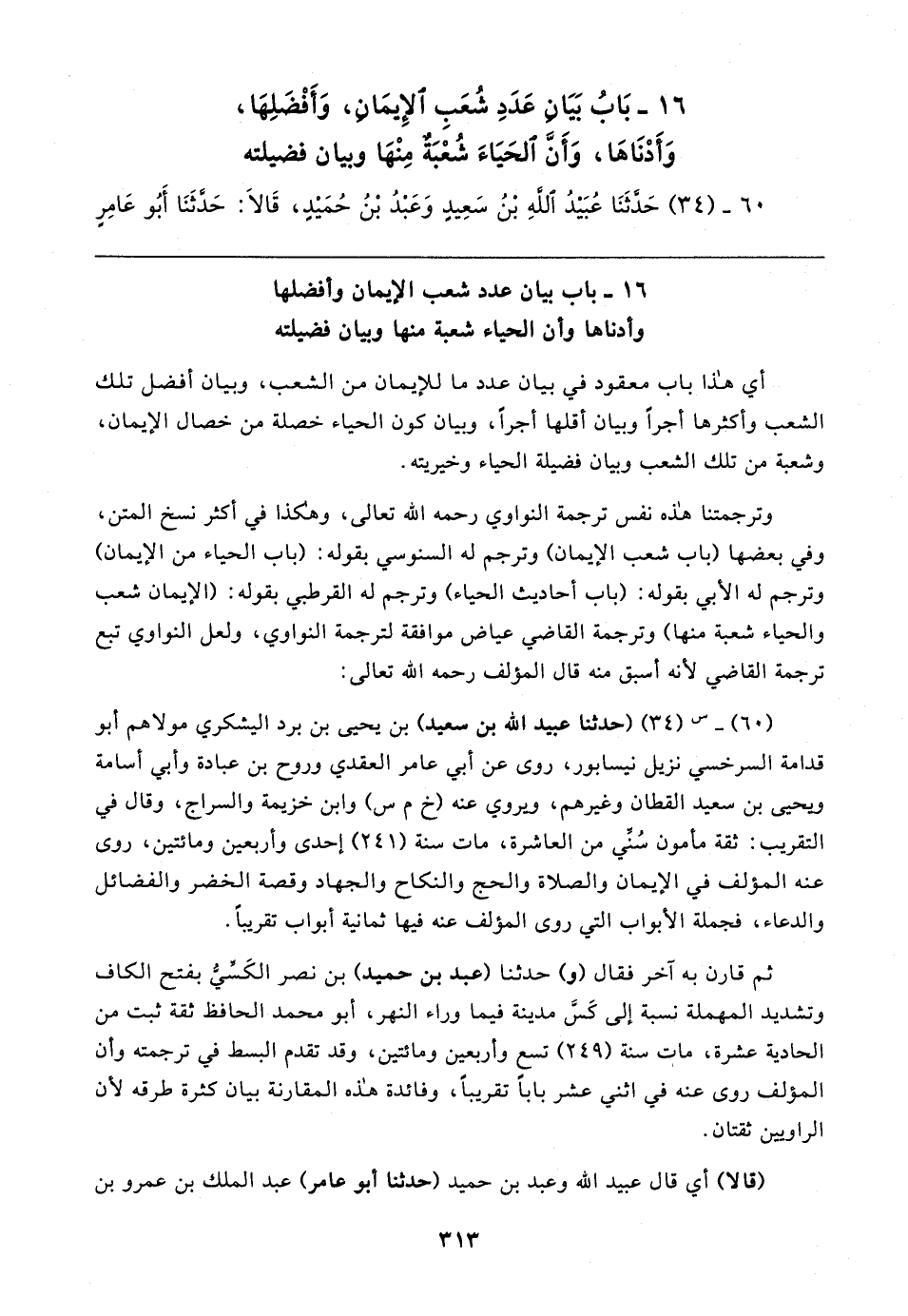 ١٦ - بَابُ بَيَان عَدَدِ شُعَبِ الإِيمَان، وَأَفْضَلِهَا، وَأَدْنَاهَا، وَأنَّ الحَيَاءَ شُعْبَةٌ مِنْهَا وبيان فضيلته