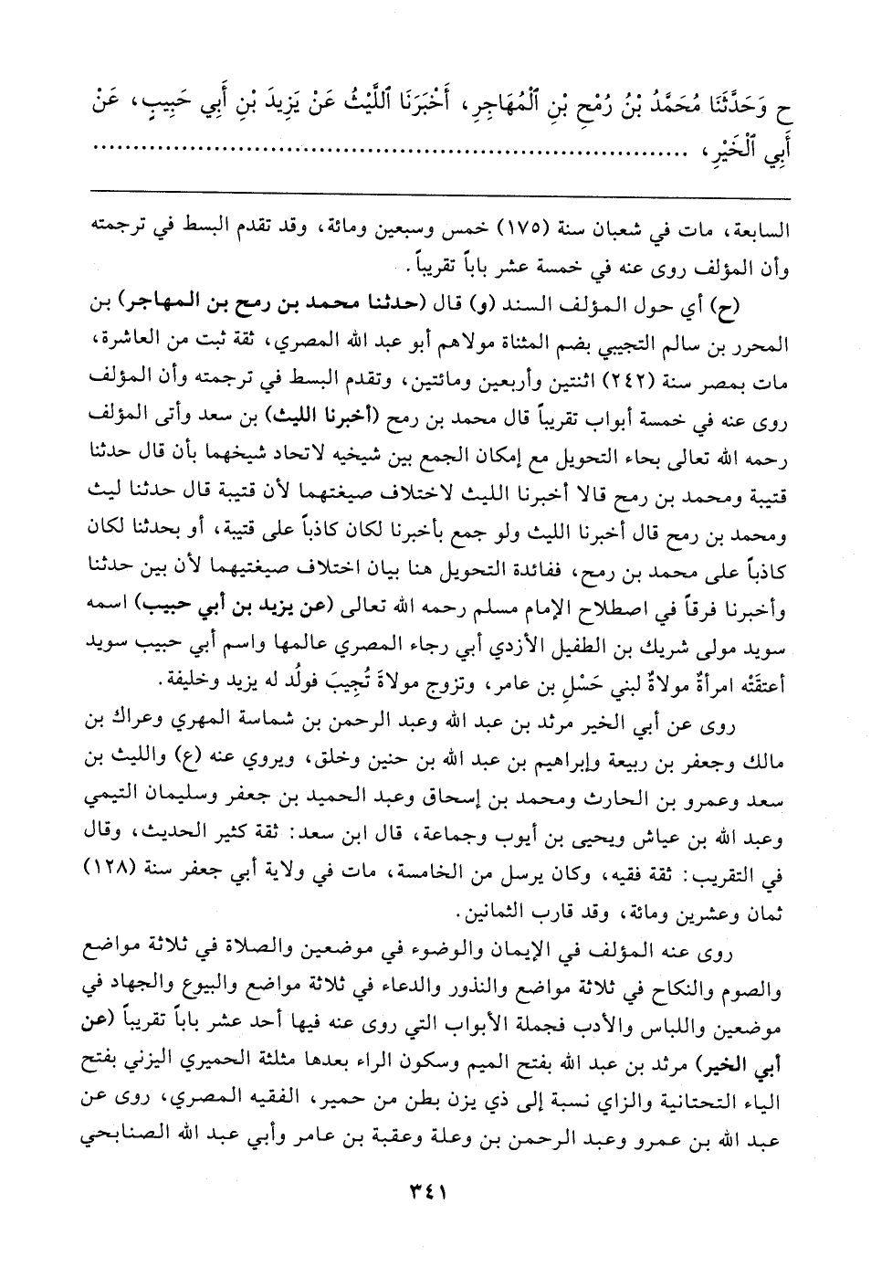 ح وَحَدَّثَنَا مُحَمَّدُ بْنُ رُمْحِ بْنِ الْمُهَاجِرِ، أَخْبَرَنَا اللَّيثُ عَنْ يَزِيدَ بْنِ أَبِي حَبِيبٍ، عَنْ أَبِي الْخَيرِ،