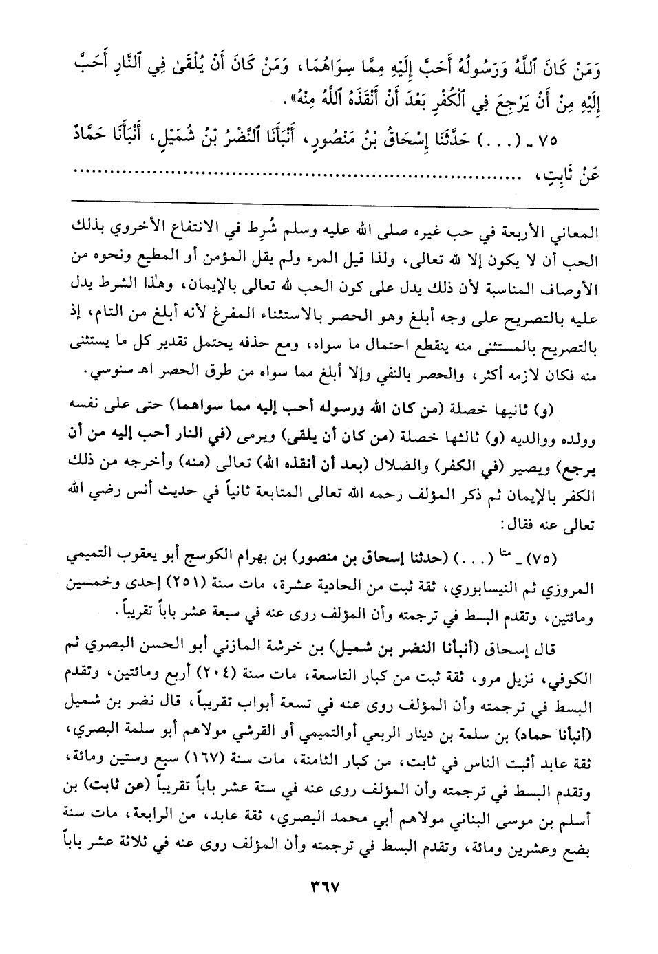 وَمَنْ كَانَ اللهُ وَرَسُولُهُ أَحَبَّ إِلَيهِ مِمَّا سِوَاهُمَا، وَمَنْ كَانَ أَنْ يُلْقَى فِي النَّارِ أَحَبَّ إِلَيهِ مِنْ أَنْ يَرْجِعَ فِي الْكُفْرِ بَعْدَ أَنْ أَنْقَذَهُ اللهُ مِنْهُ".