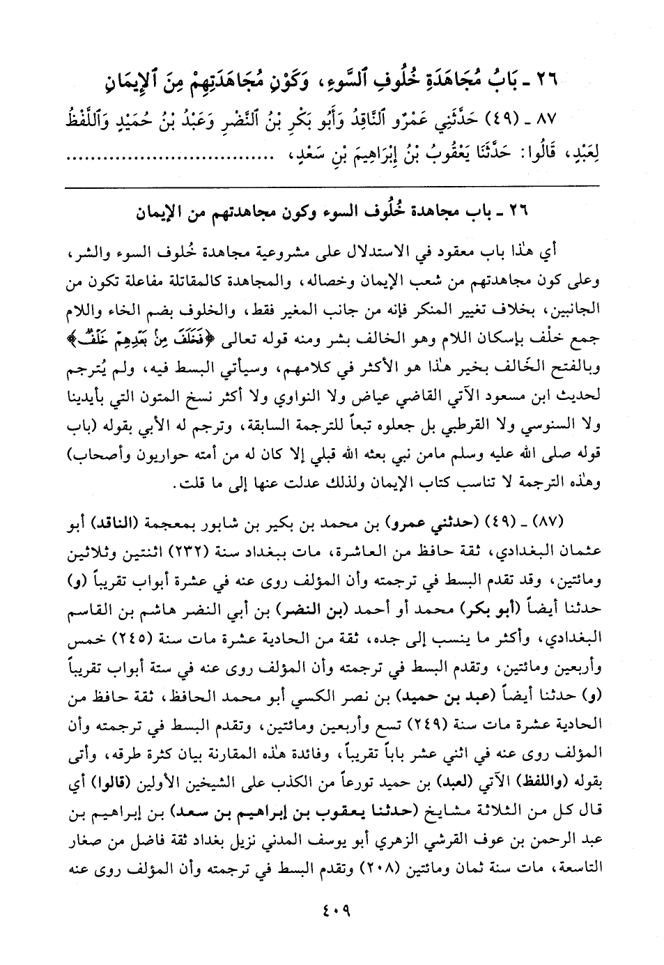 ٢٦ - بَابُ مُجَاهَدَةِ خُلُوفِ السَّوءِ، وَكَوْنِ مُجَاهَدَتِهِمْ مِنَ الإِيمَانِ