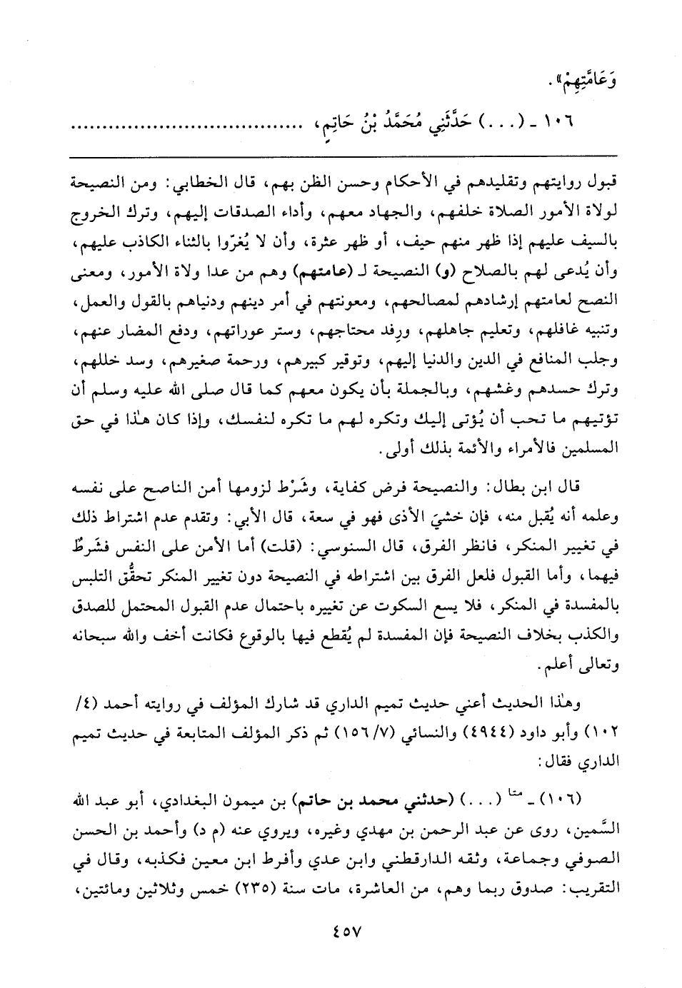 ١٠٦ - (٠٠) حَدَّثَنِي مُحَمَّدُ بْنُ حَاتِمٍ،