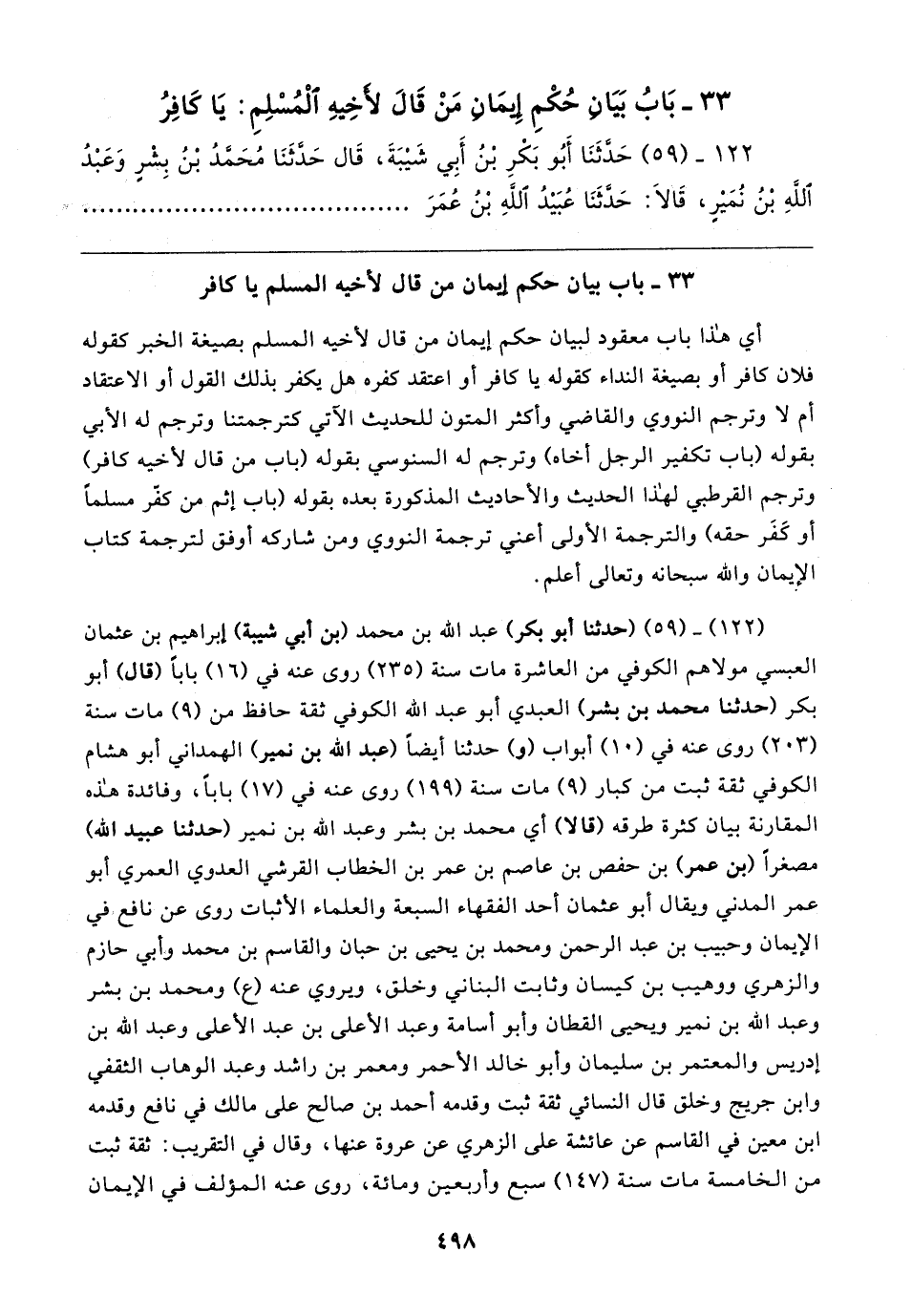 ٣٣ - بَابُ بَيَان حُكْمِ إِيمَانِ مَنْ قَال لأخِيهِ الْمُسْلِمِ: يَا كَافِرُ