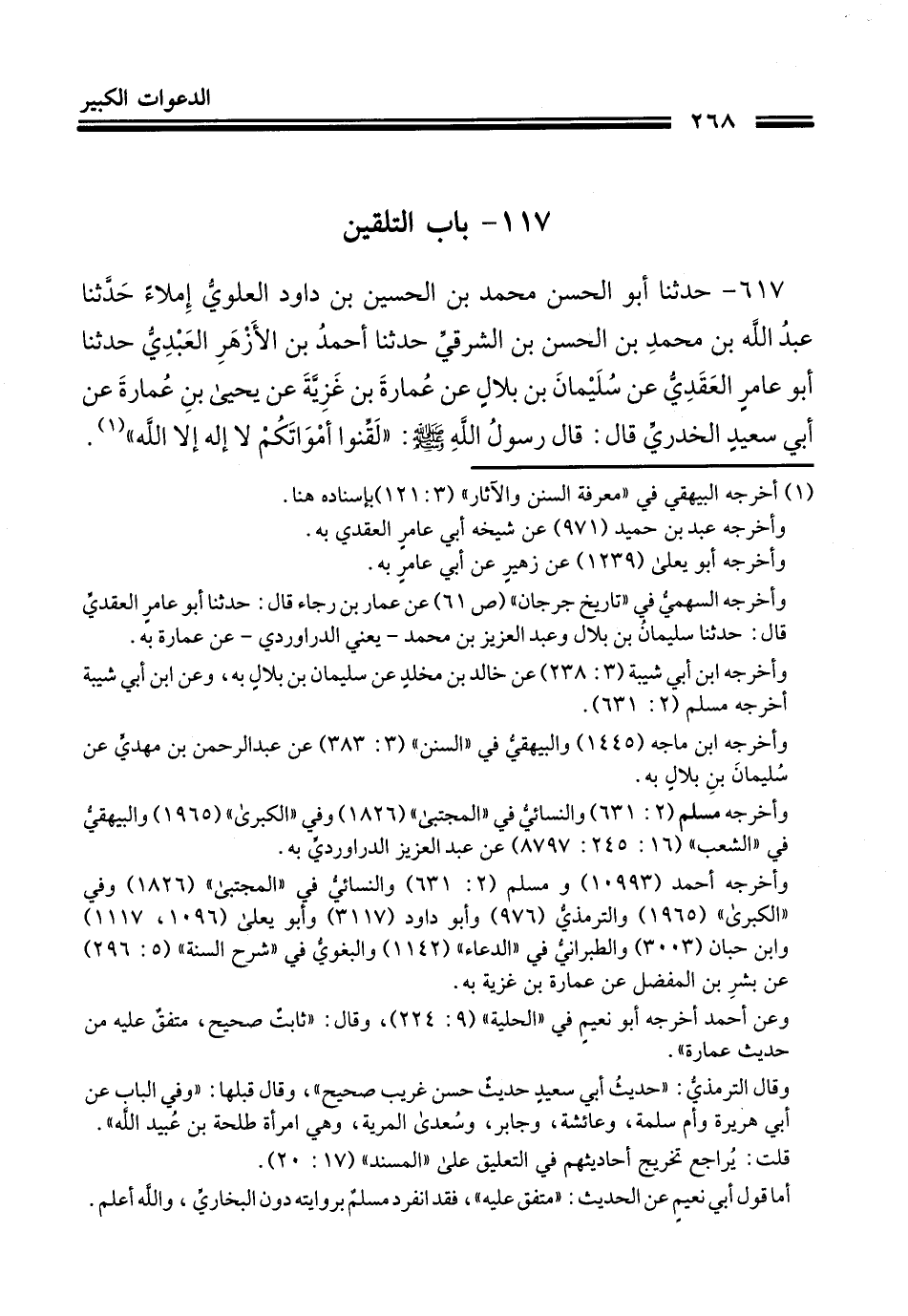 617- حَدَّثَنا أبو الحسن محمد بن الحسين بن داود العلوي حَدَّثَنا عبد الله بن محمد بن الحسن بن الشرقي حدثنا أحمد بن الأزهر العبدي حدثنا أبو عامر العقدي، عن سليمان بن بلال، عن عمارة بن غزية، عن يحيى بن عمارة، عن أبي سعيد الخدري رضي الله عنه قال: قال رسول الله صلى الله عليه وسلم: " لقنوا موتاكم لا إله إلا الله.