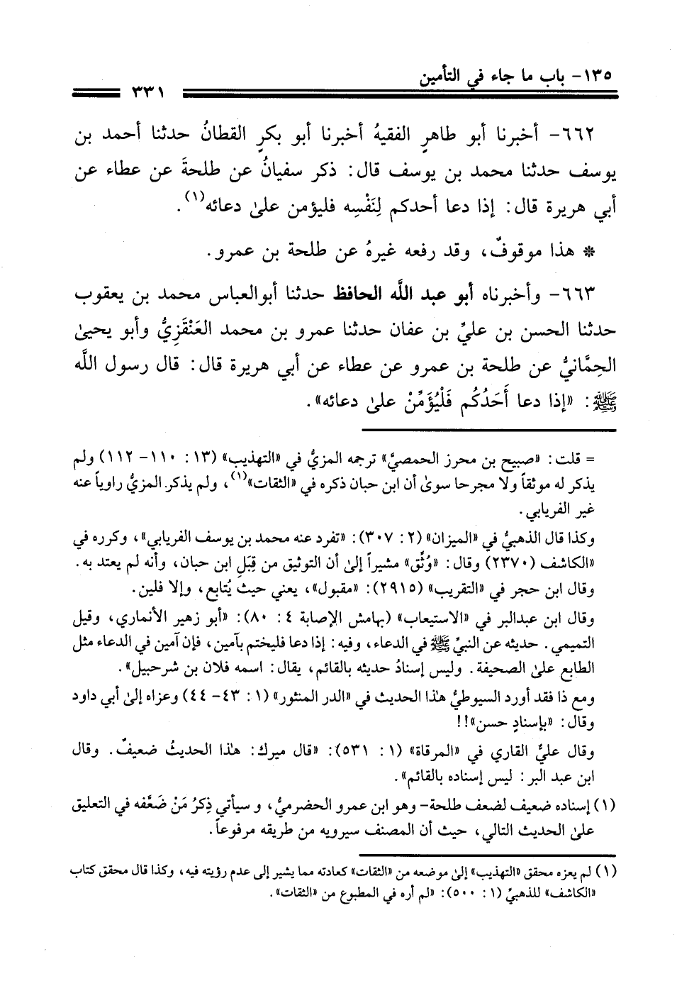 663- وأَخْبَرناه أبو عبد الله الحافظ حَدَّثَنا أبو العباس محمد بن يعقوب حَدَّثَنا الحَسَن بن علي بن عفان حَدَّثَنا عمرو بن محمد العنقزي وأبو يحيى الحماني عن طلحة بن عمرو , عن عَطَاء , عن أبي هريرة رضي الله عنه , قال: قال رسول الله صلى الله عليه وسلم إذا دعا أحدكم فليؤمن على دعائه.