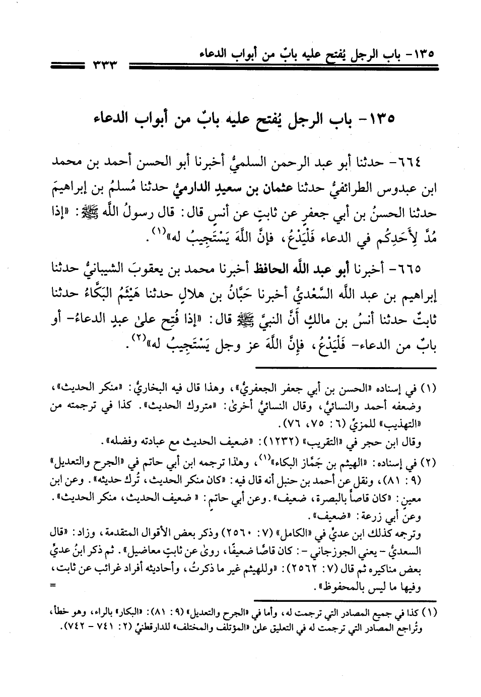 665- أَخْبَرنَا أبو عبد الله الحافظ أَخْبَرنَا محمد بن يعقوب الشيباني حَدَّثَنا إبراهيم بن عبد الله السعدي أَخْبَرنَا حبان بن هلال حَدَّثَنا هيثم البكاء حَدَّثَنا ثابت حَدَّثَنا أنس بن مالك رضي الله عنه أن النبي صلى الله عليه وسلم قال إذا فتح على عبد الدعاء أو باب من الدعاء فليدع فإن الله عزَّ وجلَّ يستجيب له.