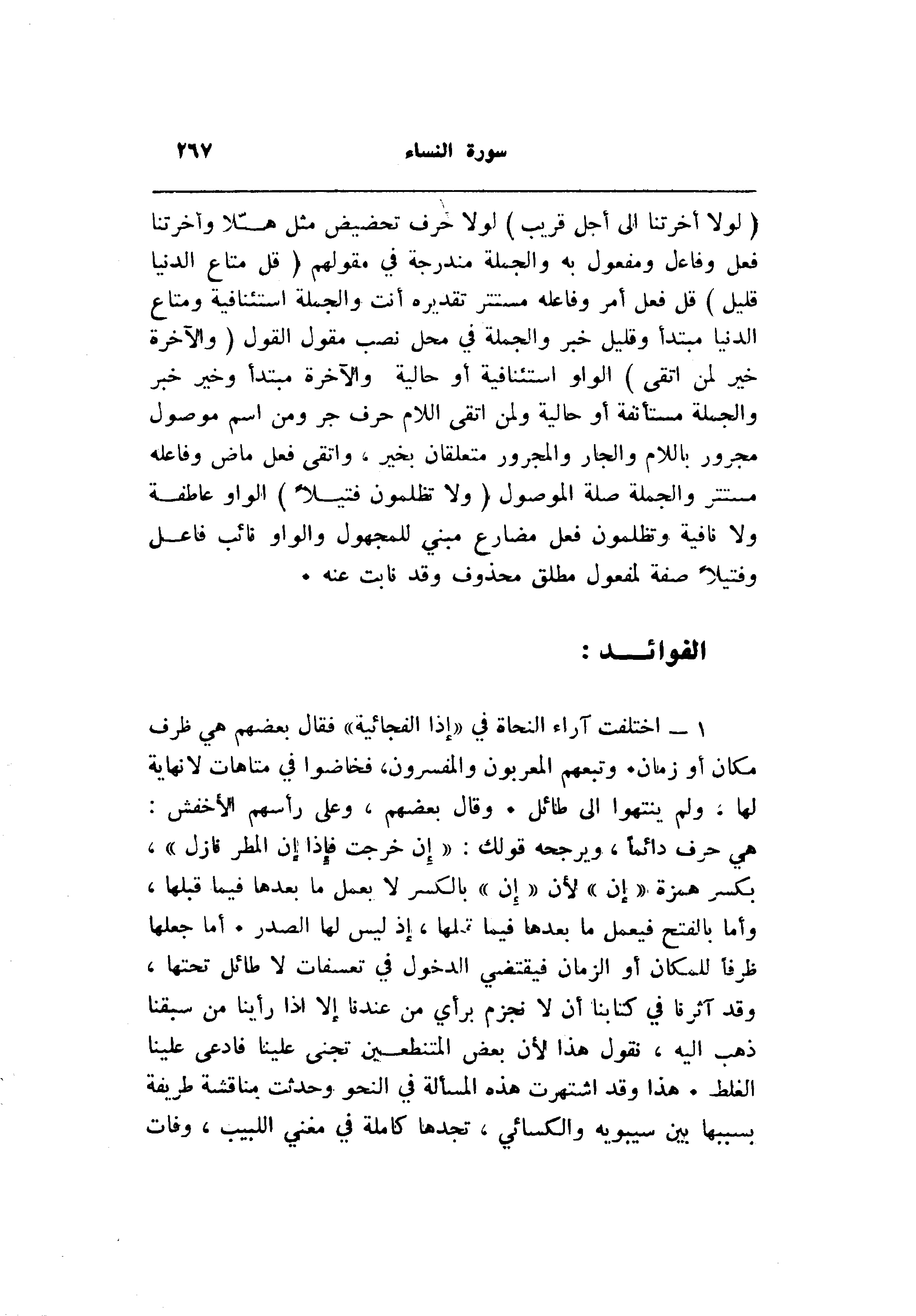 1- اختلفت آراء النحاة في «إذا الفجائية» فقال بعضهم هي ظرف مكان أو زمان. وتبعهم المعربون والمفسرون، فخاضوا في متاهات لانهاية لها، ولم ينتهوا إلى طائل. وقال بعضهم، وعلى رأسهم الأخفش: