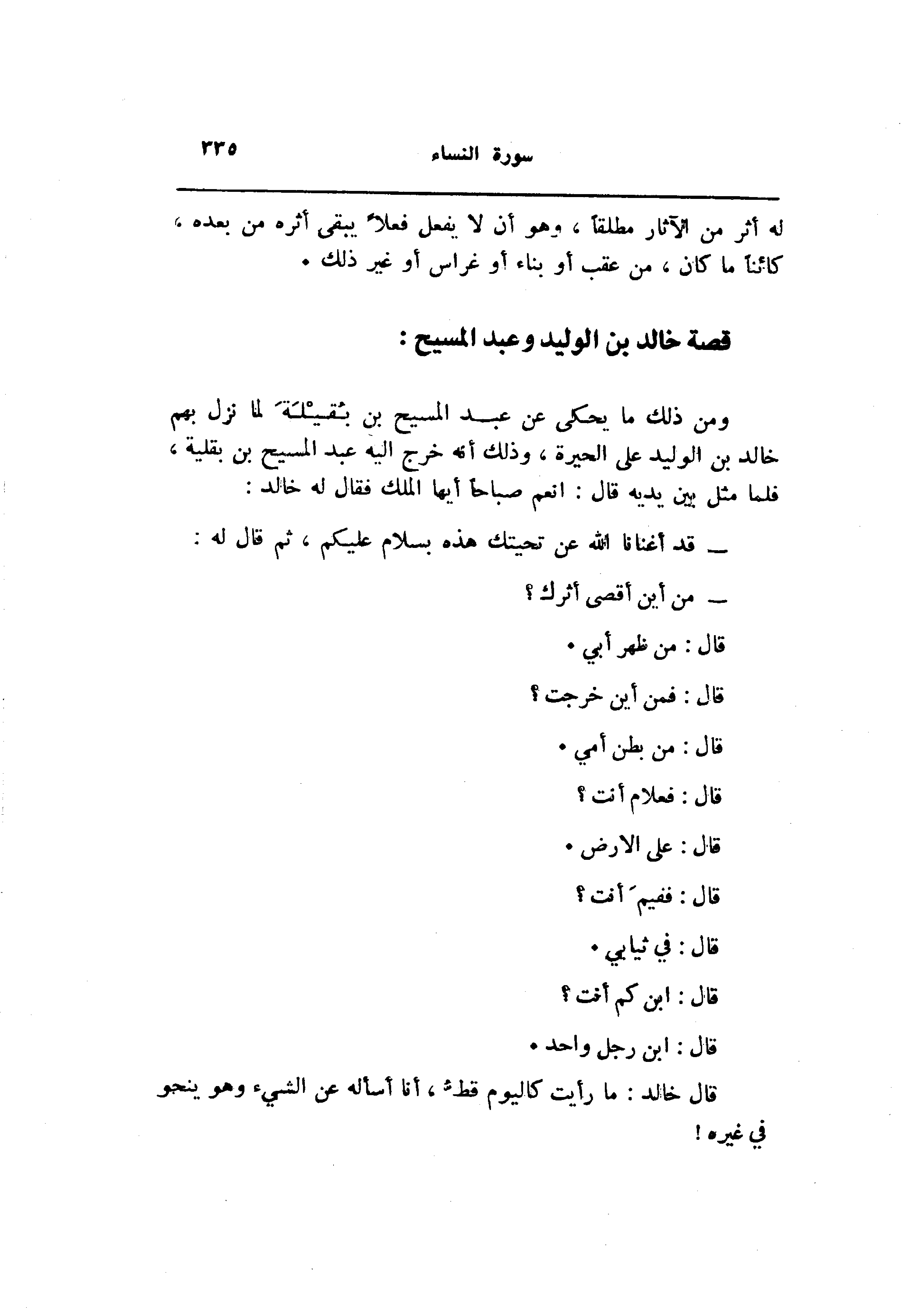 قال خالد: ما رأيت كاليوم قطّ، أنا أسأله عن الشيء وهو ينحو في غيره!