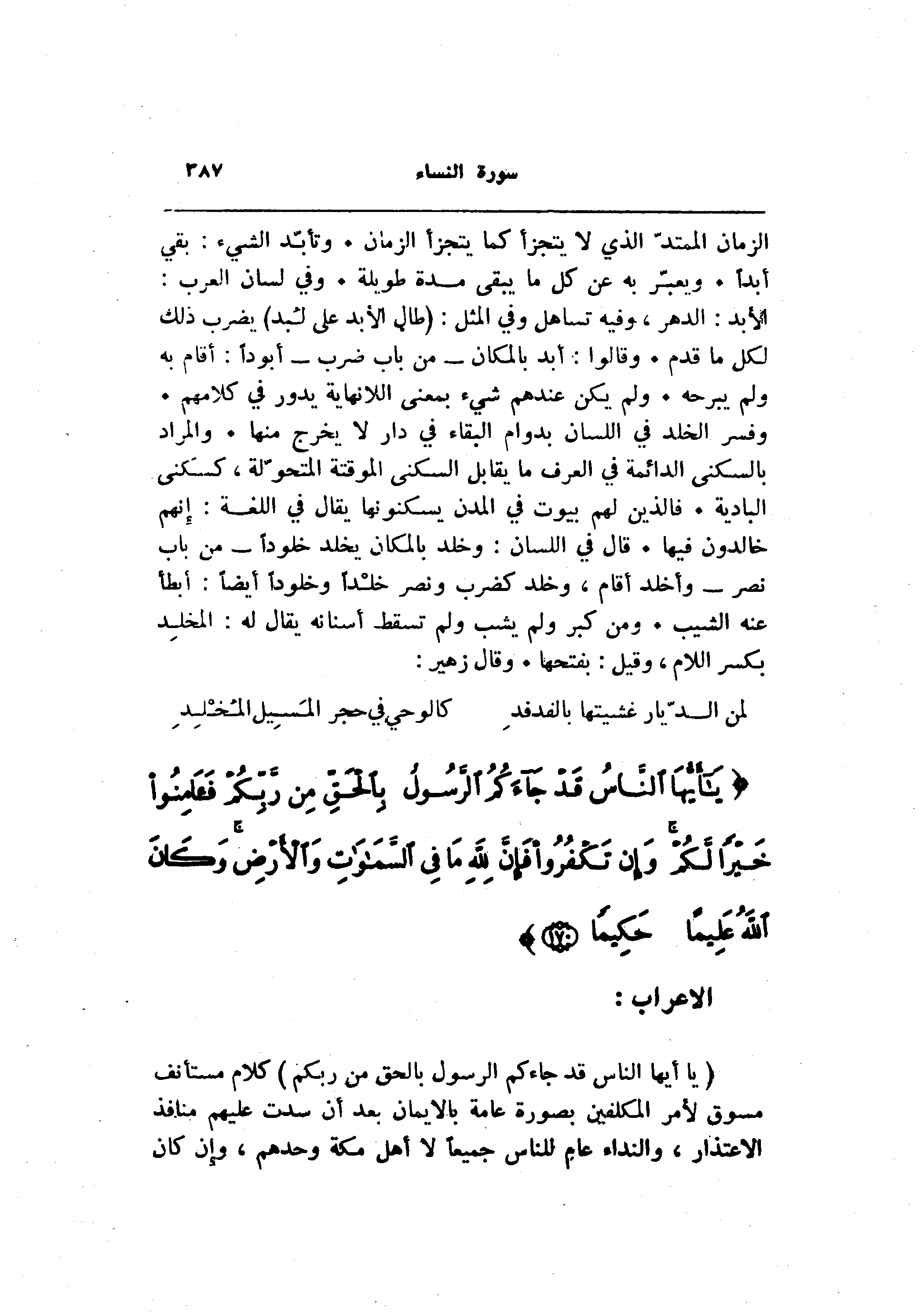 (يا أَيُّهَا النَّاسُ قَدْ جاءَكُمُ الرَّسُولُ بِالْحَقِّ مِنْ رَبِّكُمْ) كلام مستأنف مسوق لأمر المكلفين بصورة عامة بالايمان بعد أن سدت عليهم منافذ الاعتذار، والنداء عام للناس جميعا لا أهل مكة وحدهم، وإن كان