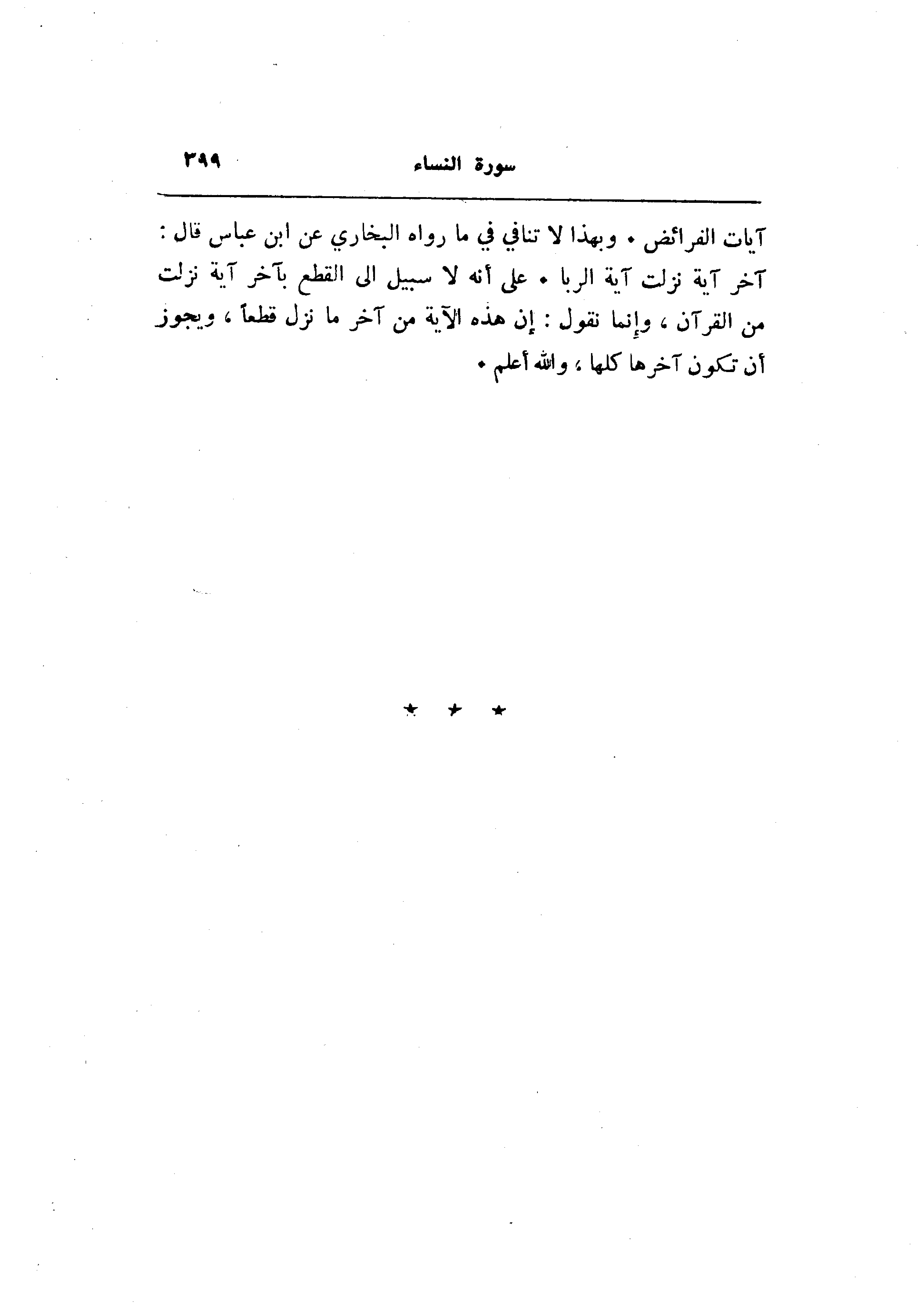 آيات الفرائض. وبهذا لا تنافي في ما رواه البخاري عن ابن عباس قال: