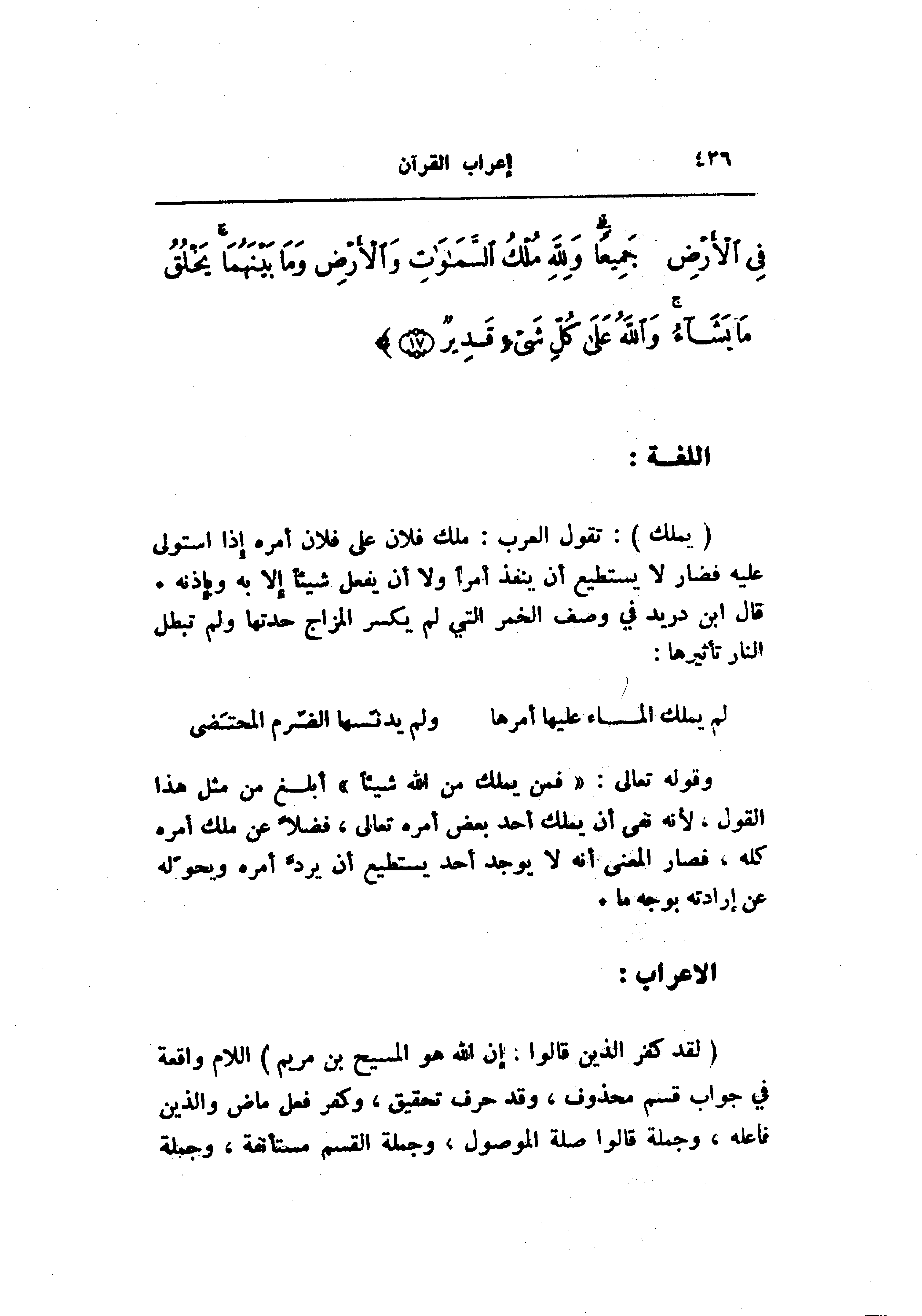 (يَمْلِكُ) : تقول العرب: ملك فلان على فلان أمره إذا استولى عليه فضار لا يستطيع أن ينفذ أمرا ولا أن يفعل شيئا إلا به وبإذنه.