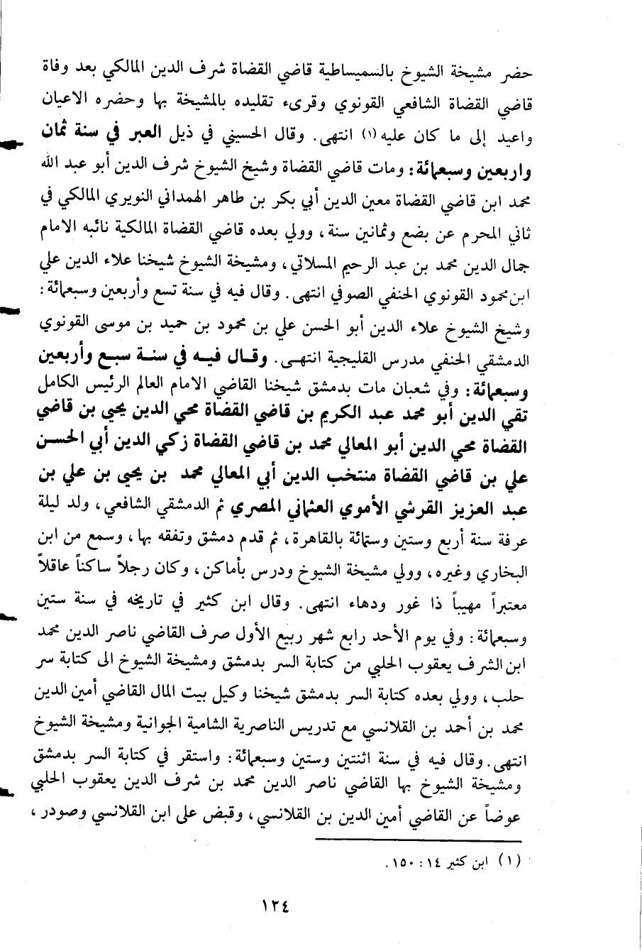 حضر مشيخة الشيوخ بالسميساطية قاضي القضاة شرف الدين المالكي بعد وفاة قاضي القضاة الشافعي القونوي وقريء تقليده بالمشيخة بها وحضره الاعيان واعيد الى ما كان عليه انتهى وقال الحسني في ذيل العبر في سنة ثمان واربعين وسبعمائة ومات قاضي القضاة وشيخ الشيوخ شرف الدين ابو عبد الله محمد ابن قاضي القضاة معين الدين ابي بكر بن طاهر الهمداني النويري المالكي في ثاني المحرم عن بضع وثمانين سنة وولي بعده قاضي القضاة المالكية نائبه الامام جمال الدين محمد بن عبد الرحيم المسلاتي ومشيخة الشيوخ شيخنا علاء الدين علي ابن محمود القونوي الحنفي الصوفي انتهى وقال فيه في سنة تسع واربعين وسبعمائة وشيخ الشيوخ علاء الدين ابو الحسن علي بن محمود بن حميد بن موسى القونوي الدمشقي الحنفي مدرس القليجية انتهى وقال فيه في سنة سبع واربعين وسبعمائة وفي شعبان مات بدمشق شيخنا القاضي الامام العالم الرئيس الكامل تقي الدين ابو محمد عبد الكريم بن قاضي القضاة محي الدين يحيى بن قاضي القضاة محي الدين ابو المعالي محمد بن قاضي القضاة زكي الدين ابي الحسن علي بن قاضي القضاة منتخب الدين ابي المعالي محمد بن يحيى بن علي بن عبد العزيز القرشي الاموي العثماني المصري ثم الدمشقي الشافعي ولد ليلة عرفة سنة اربع وستين وستمائة بالقاهرة ثم قدم دمشق وتفقه بها وسمع من ابن البخاري وغيره وولي مشيخة الشيوخ ودرس باماكن وكان رجلا ساكنا عاقلا معتبرا مهيبا ذا غور ودهاء انتهى وقال ابن كثير في تاريخه في سنة ستين وسبعمائة وفي يوم الاحد رابع شهر ربيع الاول صرف القاضي ناصر الدين محمد ابن الشرف يعقوب الحلبي من كتابه السر بدمشق ومشيخة الشيوخ الى كتابه سر حلب وولي بعده كتابة السر بدمشق شيخنا وكيل بيت المال القاضي امين الدين محمد بن احمد بن القلانسي مع تدريس الناصرية الشامية الجوانية ومشيخة الشيوخ انتهى وقال فيه في سنة اثنتين وستين وسبعمائة واستقر في كتابة السر بدمشق ومشيخة الشيوخ بها القاضي ناصر الدين محمد بن شرف الدين يعقوب الحلبي عوضا عن القاضي امين الدين بن القلانسي وقبض على ابن القلانسي وصودر