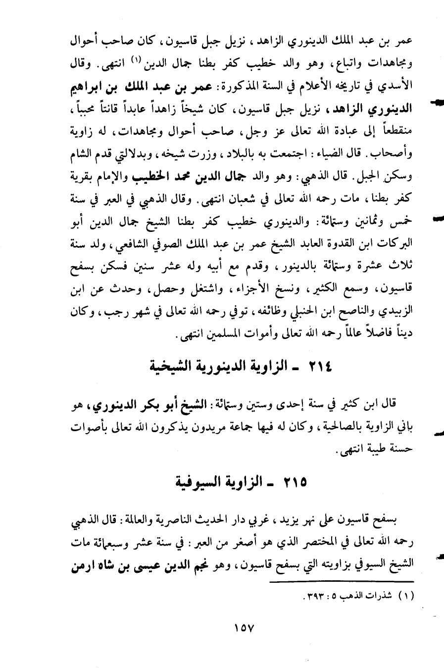 قال ابن كثير في سنة إحدى وستين وستمائة: الشيخ أبو بكر الدينوري هو باني الزاوية بالصالحية وكان له فيها جماعة مريدون يذكرون الله تعالى بأصوات حسنة طيبة انتهى. 215- الزاوية السيوفية