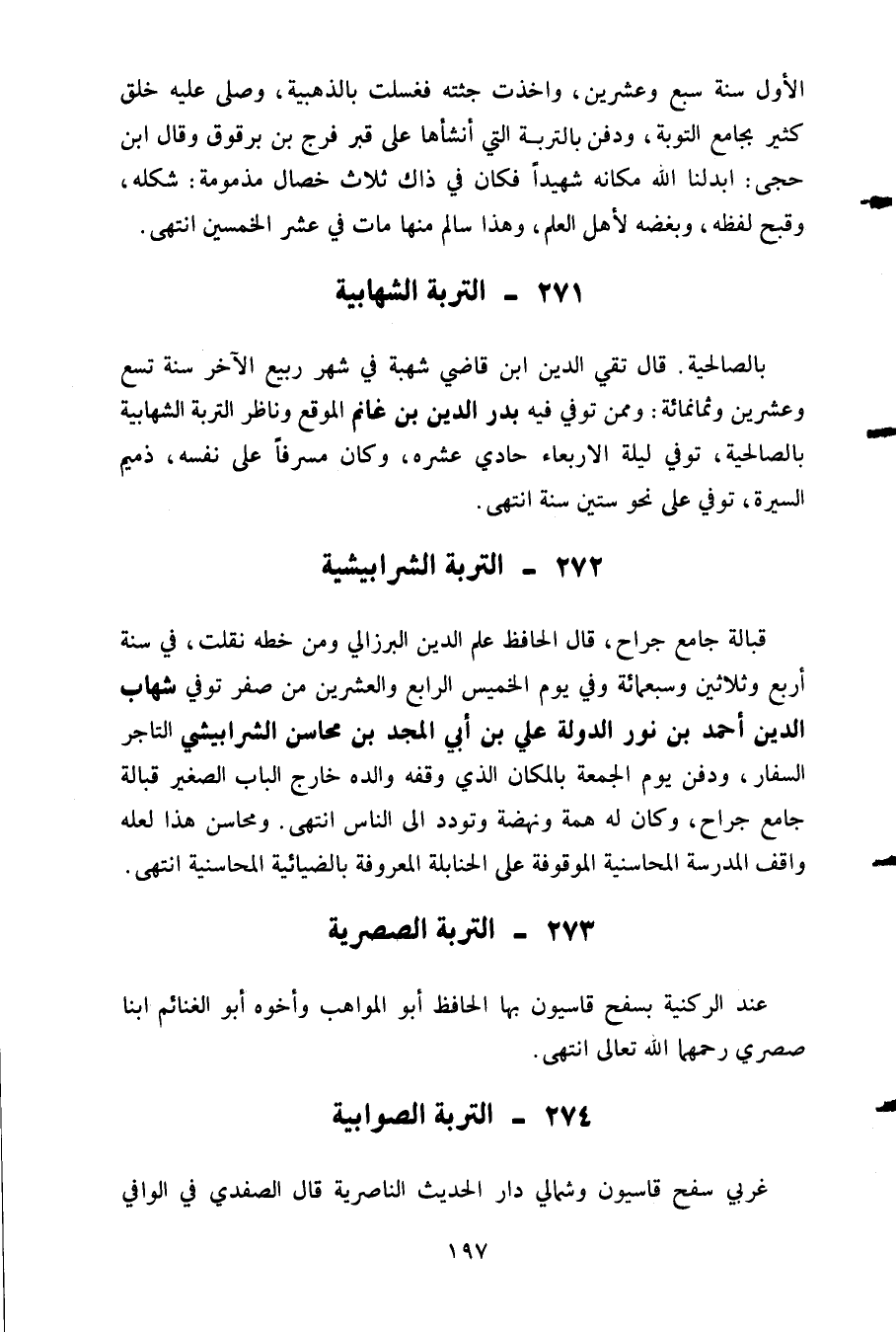 غربي سفح قاسيون وشمالي دار الحديث الناصرية قال الصفدي في الوافي