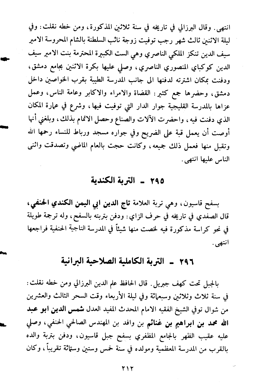 بسفح قاسيون وهي تربة العلامة تاج الدين أبي اليمن الكندي الحنفي قال الصفدي في تاريخه في حرف الزاي: ودفن بتربته بالسفح وله ترجمة طويله في نحو كراسة مذكورة فيه لخصت منها شيئا في المدرسة التاجية الحنفية فراجعها انتهى.