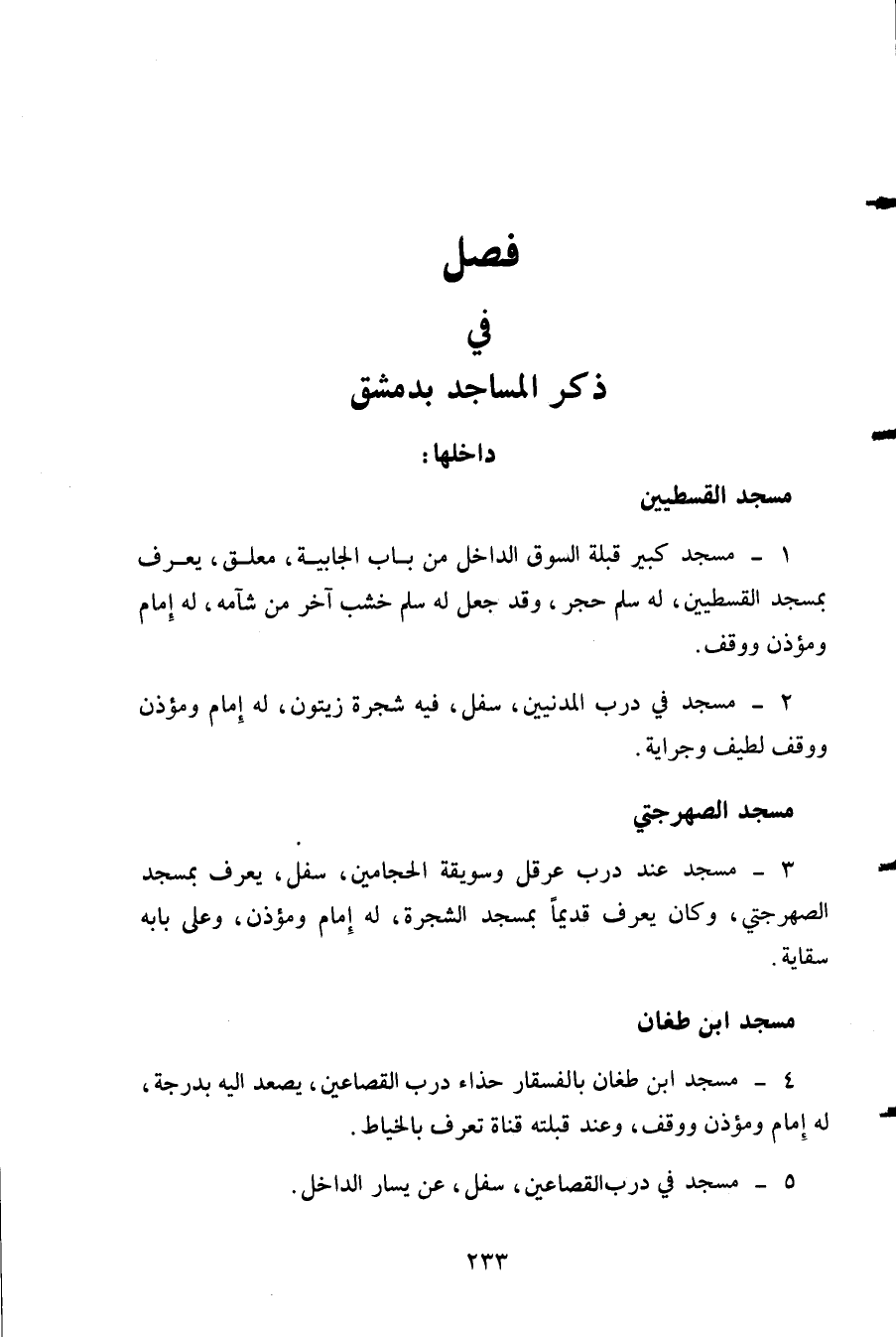 1- مسجد كبير قبلة السوق الداخل من باب الجابية معلق يعرف بسمجد القسطيين له سلم حجر وقد جعل له سلم خشب آخر من شامه له إمام ومؤذن ووقف.