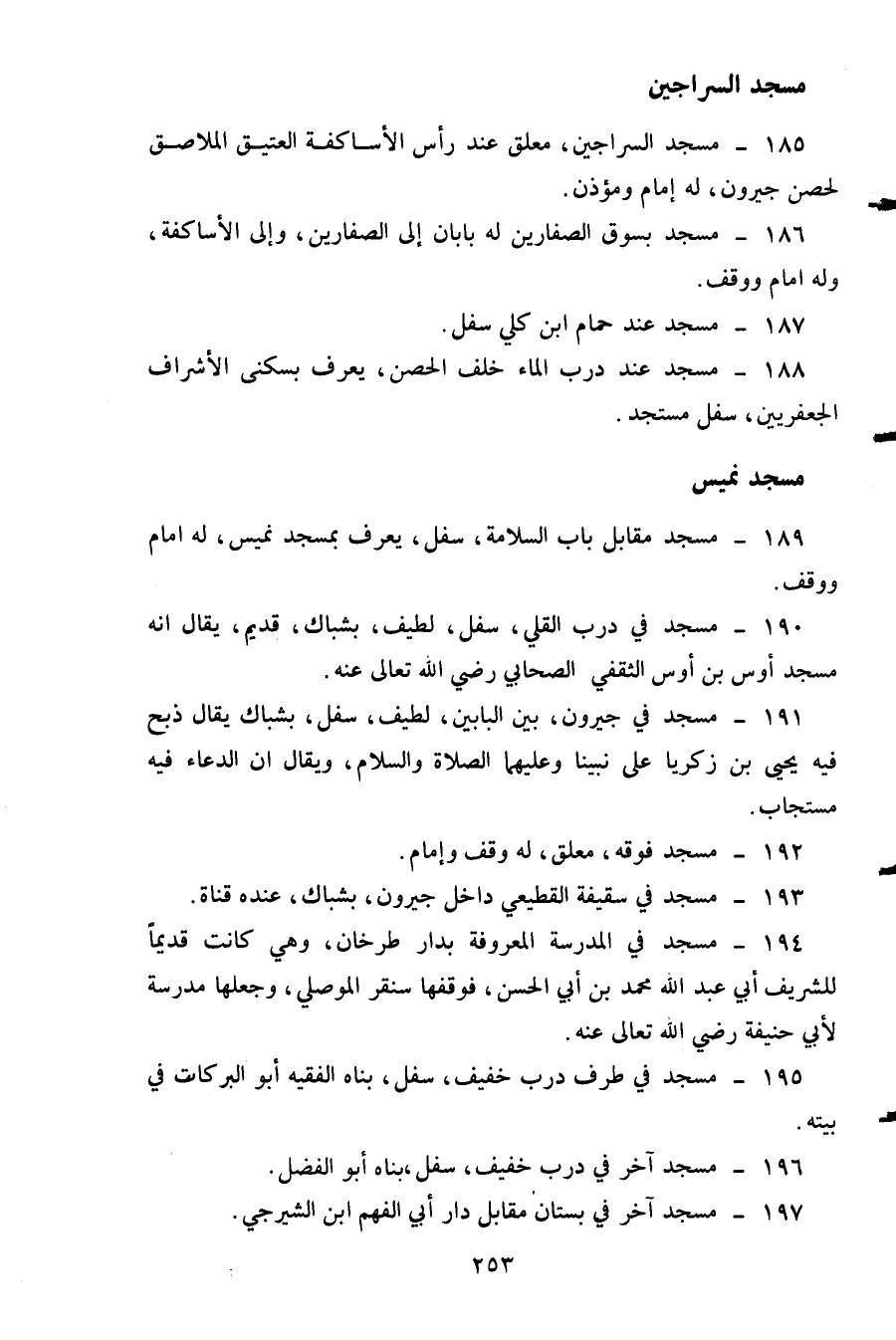 185- مسجد السراجين معلق عند رأس الاساكفة العتيق الملاصق لحصن جيرون له إمام ومؤذن.