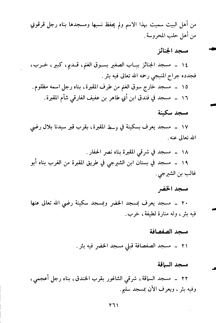 22- مسجد السماقة شرقي الشاغور بقرب الخندق بناه رجل أعجمي وفيه بئر ويعرف الآن بمسجد سليم.