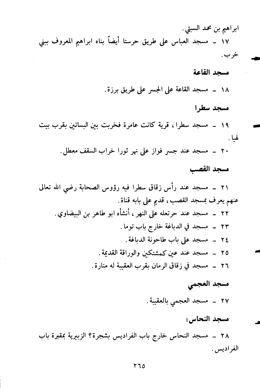 21- مسجد عند رأس زقاق سطرا فيه رؤوس الصحابة رضي الله تعالى عنهم يعرف بمسجد القصب قديم على بابه قناة.