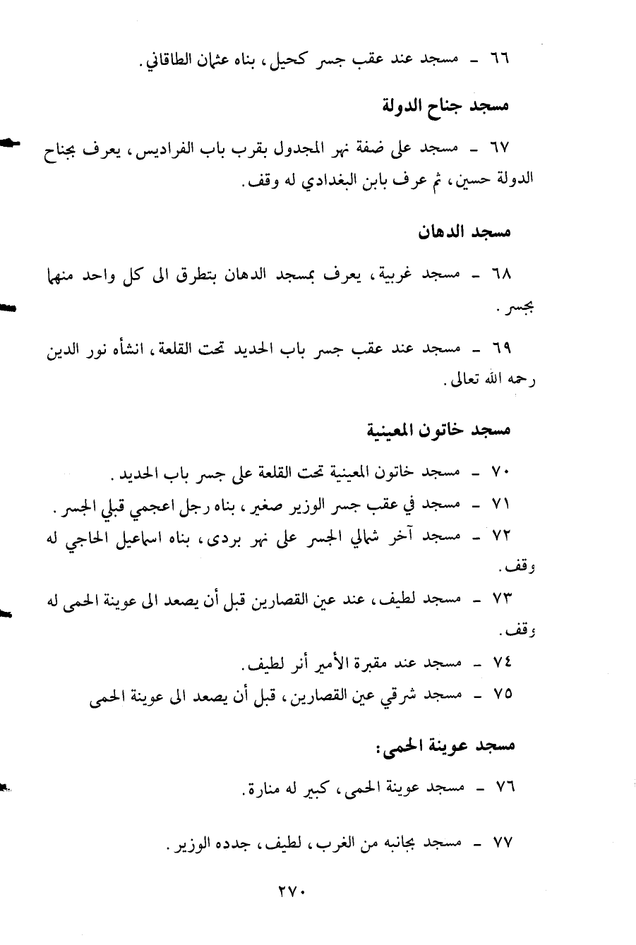 69- مسجد عند عقب جسر باب الحديد تحت القلعة أنشأه نور الدين رحمه الله تعالى.