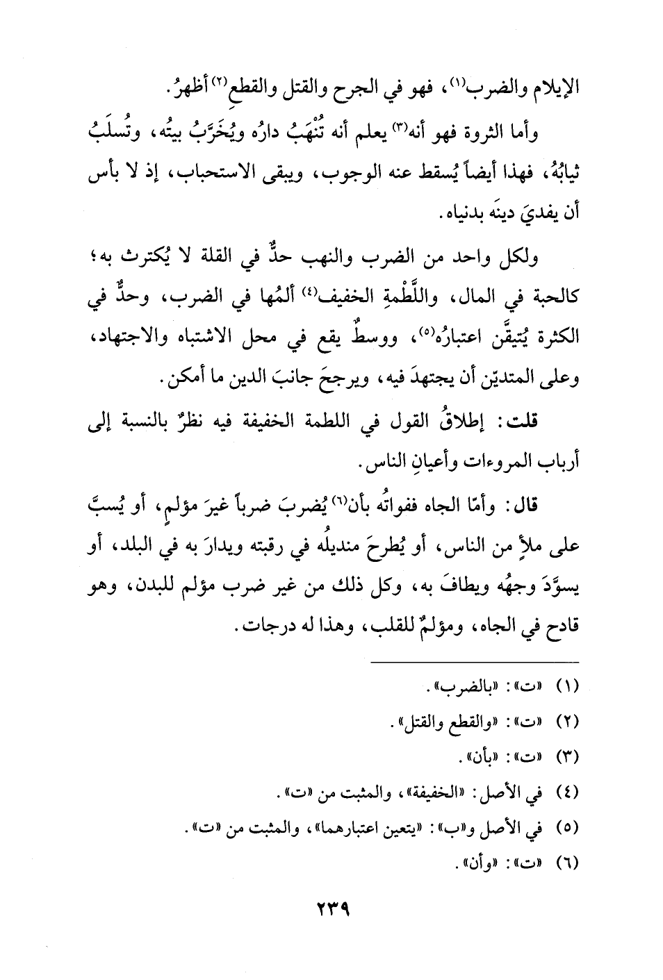 ولكل واحد من الضرب والنهب حدٌّ في القلة لا يُكترث به؛ كالحبة في المال، واللَّطْمةِ الخفيف (¬4) ألمُها في الضرب، وحدٌّ في الكثرة يُتيقَّن اعتبارُه (¬5)، ووسطٌ يقع في محل الاشتباه والاجتهاد، وعلى المتديّن أن يجتهدَ فيه، ويرجحَ جانبَ الدين ما أمكن.