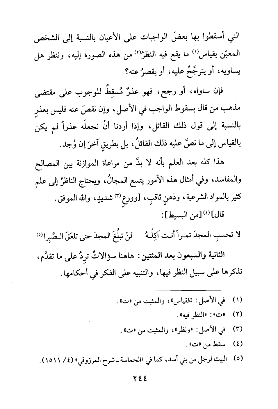 الثانية والسبعون بعد المئتين: هاهنا سؤالات ترِدُ على ما تقدَّم، نذكرها على سبيل النظر فيها، والتنبيه على الفكر في أحكامها.
