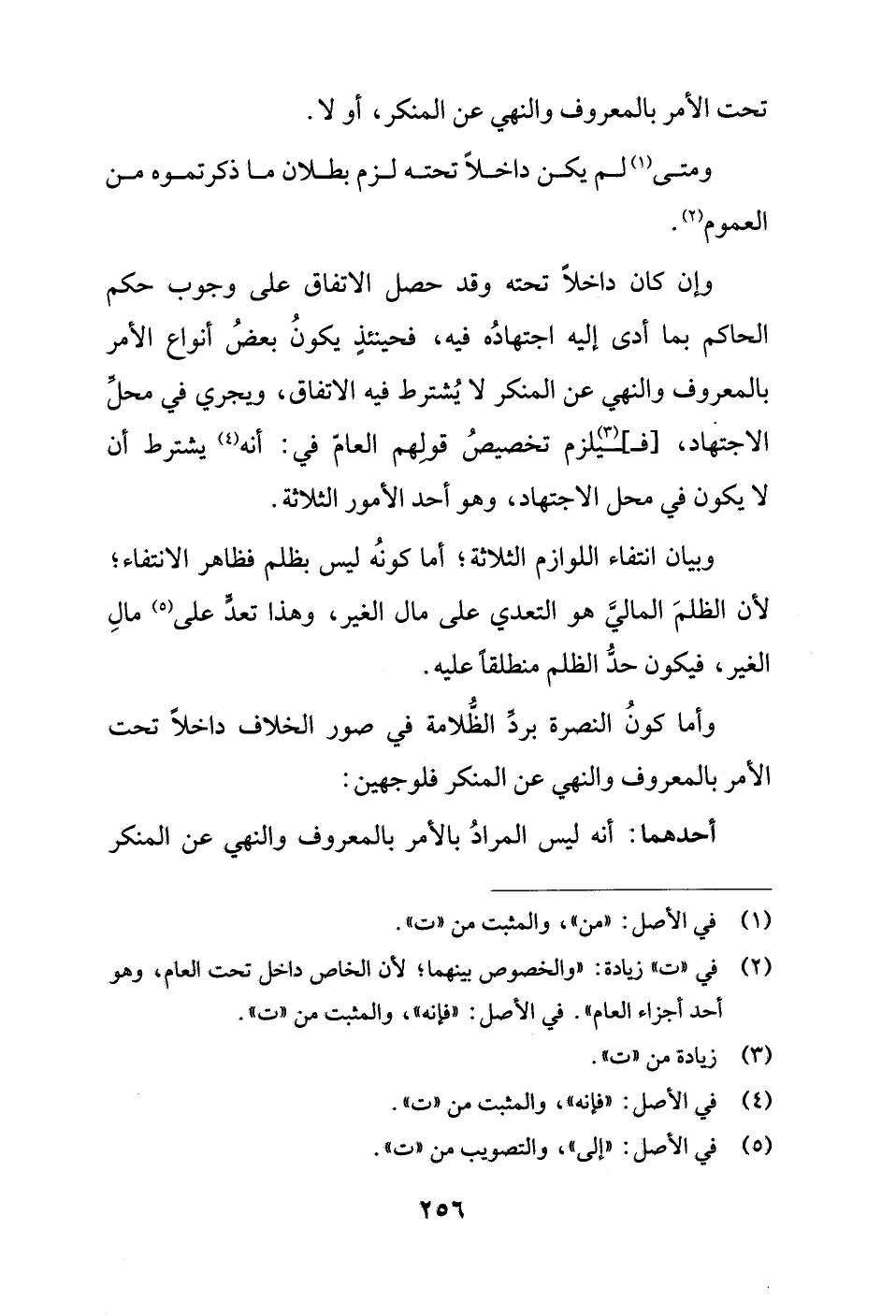 وأما كونُ النصرة بردّ الظُّلامة في صور الخلاف داخلًا تحت الأمر بالمعروف والنهي عن المنكر فلوجهين:
