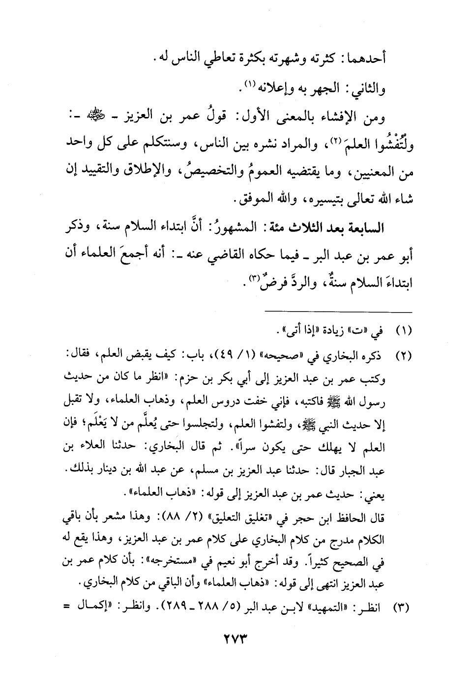 ومن الإفشاء بالمعنى الأول: قولُ عمر بن العزيز - رضي الله عنه -: ولْتُفْشُوا العلمَ (¬2)، والمراد نشره بين الناس، وسنتكلم على كل واحد من المعنيين، وما يقتضيه العمومُ والتخصيصُ، والإطلاق والتقييد إن شاء الله تعالى بتيسيره، والله الموفق.