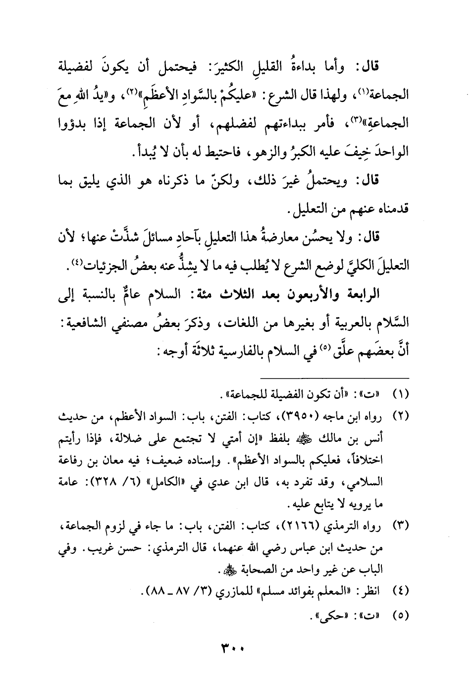 الرابعة والأربعون بعد الثلاث مئة: السلام عامٌّ بالنسبة إلى السَّلام بالعربية أو بغيرها من اللغات، وذكرَ بعضُ مصنفي الشافعية: أنَّ بعضَهم علَّق (¬5) في السلام بالفارسية ثلاثَة أوجه: