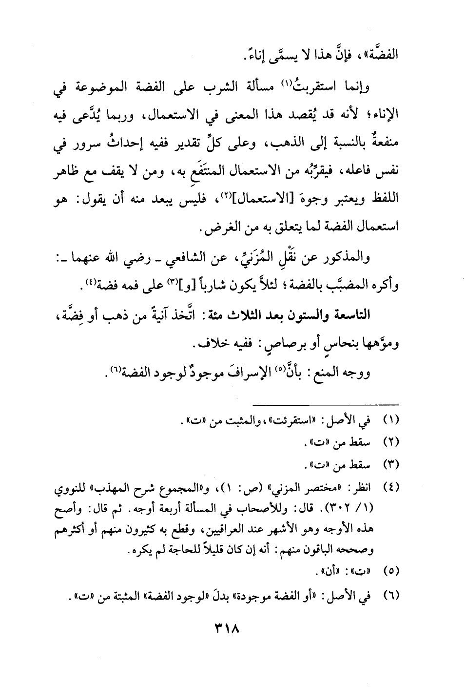التاسعة والستون بعد الثلاث مئة: اتَّخذ آنيةً من ذهب أو فِضَّة، وموَّهها بنحاسٍ أو برصاصٍ: ففيه خلاف.